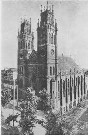 The church originally had 174-foot-high twin towers with pinnacles and turrets. However, due to crumbling sandstone trim, the towers were removed in 1939, and the East Tower was shortened to its current height - for safety reasons, to protect the people in case they were to collapse. In 2025, structural modifications were necessary to address settling and support framing in the East Tower.